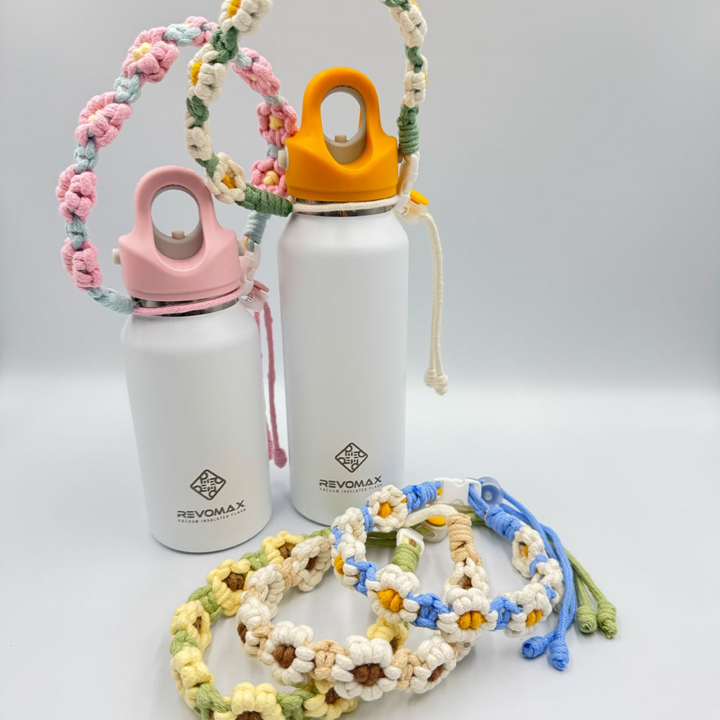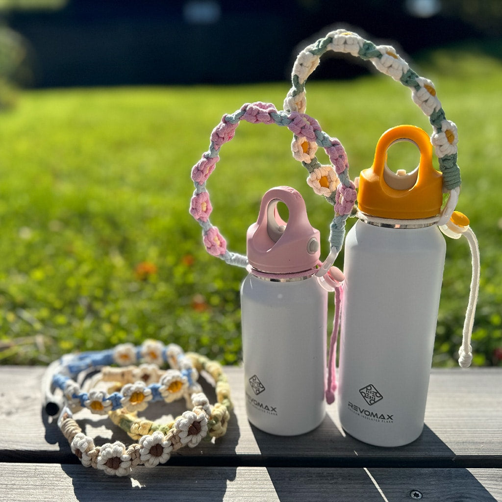 Giv din Revomax vandflaske et personligt og stilfuldt udtryk med vores håndlavede flaskehåndtag i smukt blomsterdesign.