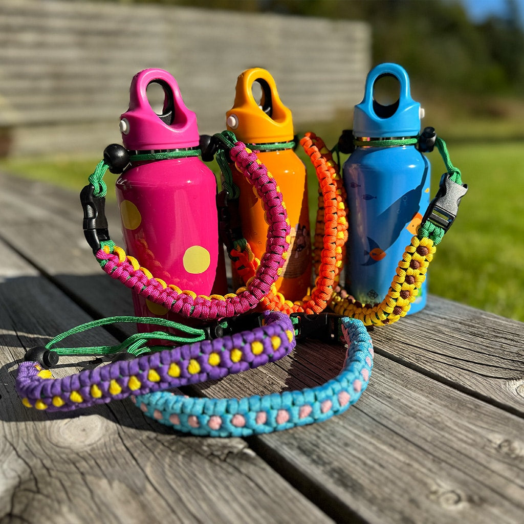 REVOMAX FLASKEHÅNDTAG I BOMULD & PARACORD – HÅNDLAVET BLOMSTERDESIGN