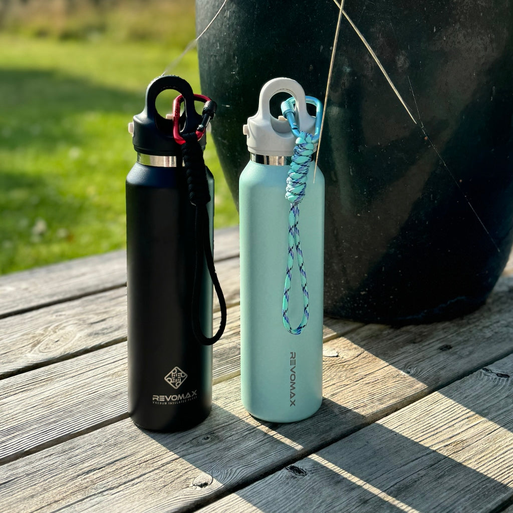 Gør din Revomax vandflaske både praktisk og stilfuld med vores håndlavede wrist strap i flettet paracord.