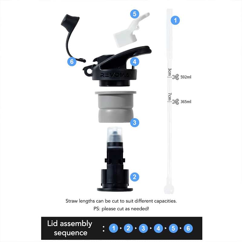 Revomax sportslåg med sugerør gør det nemt at drikke under træning, i bilen eller på farten. Åbn med én hånd eller bid i mundstykket – 100 % tæt, hygiejnisk og opvaskemaskine-sikkert.